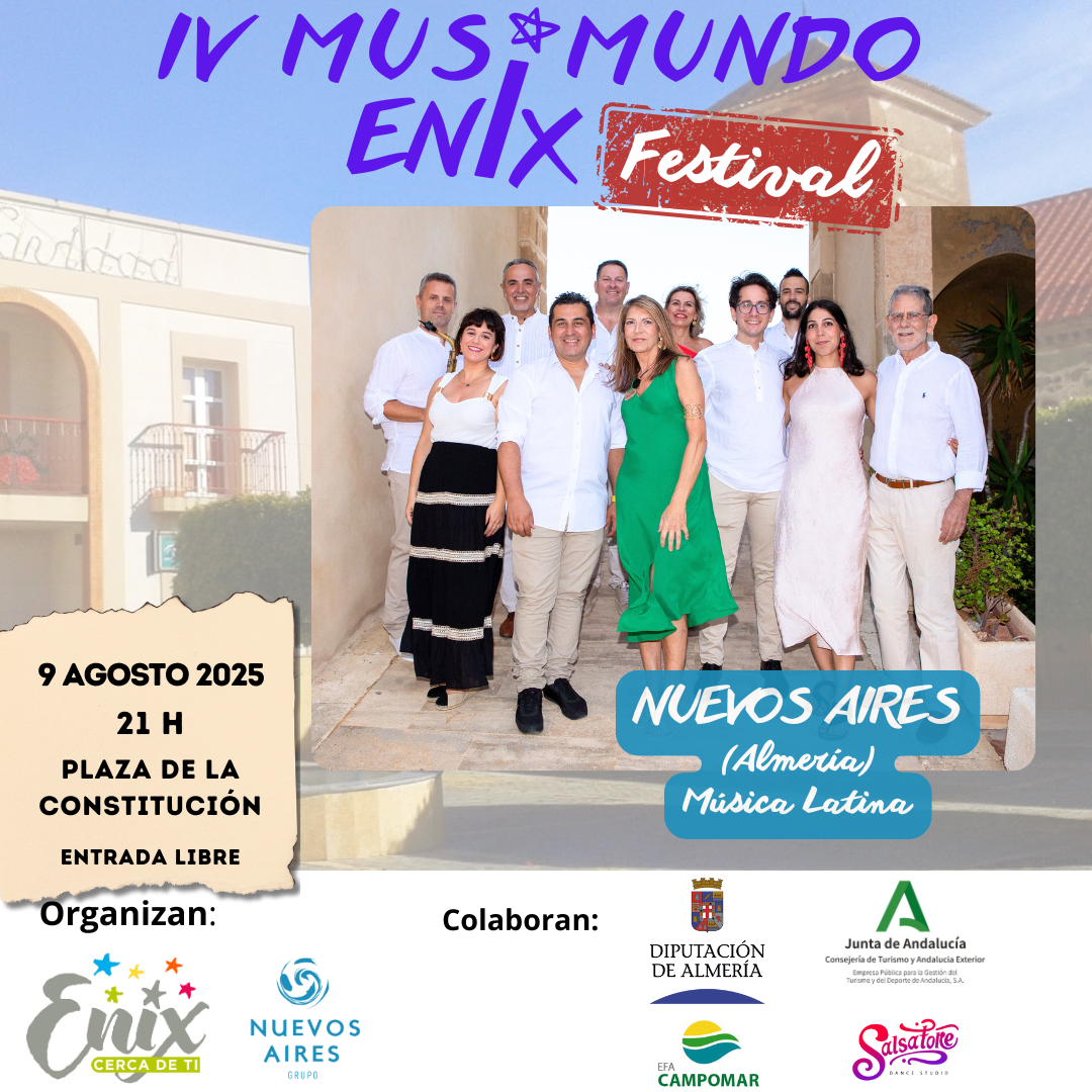 Organizado por el Ayuntamiento de Enix y la Asociación Cultural Grupo Nuevos Aires, el evento constará de cuatro conciertos gratuitos, en la plaza de la Constitución del Municipio.