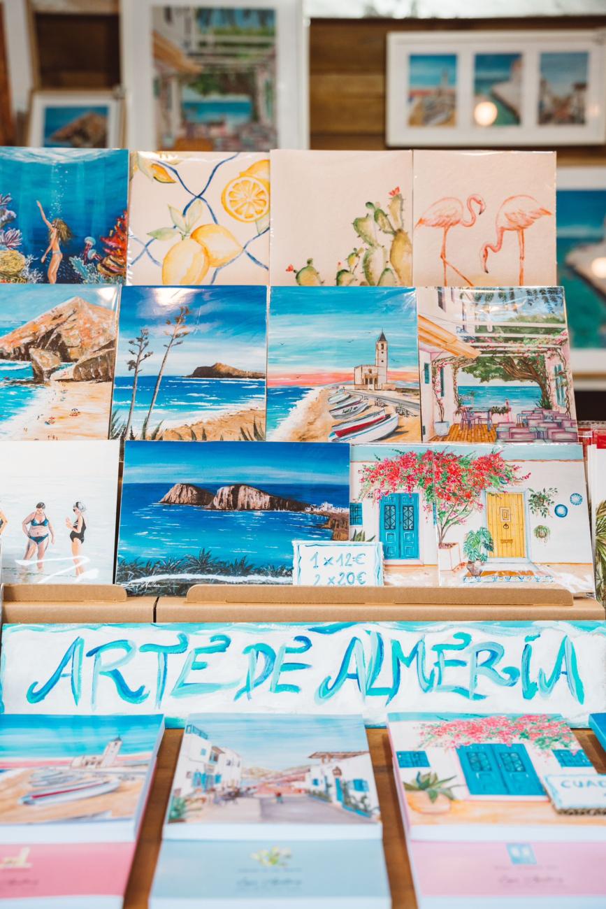 Estos días la encuentran en uno de los puestos de la Rambla de Almería -hasta el 7 de enero- en donde su láminas, cuadernos y bolsas, presentadas con detalle y mimo, están teniendo un gran éxito entre todos aquellos que se acercan a admirarlas, y a compartir detalles con la artista.